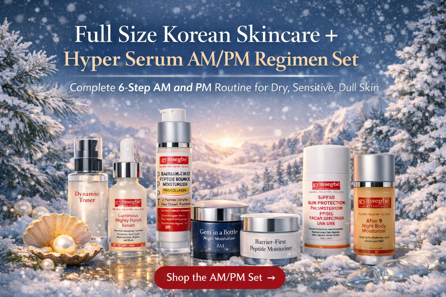Full Size Korean Skincare Set: Hyper Serum AM/PM Routine for Glass Skin | Gymsegbe